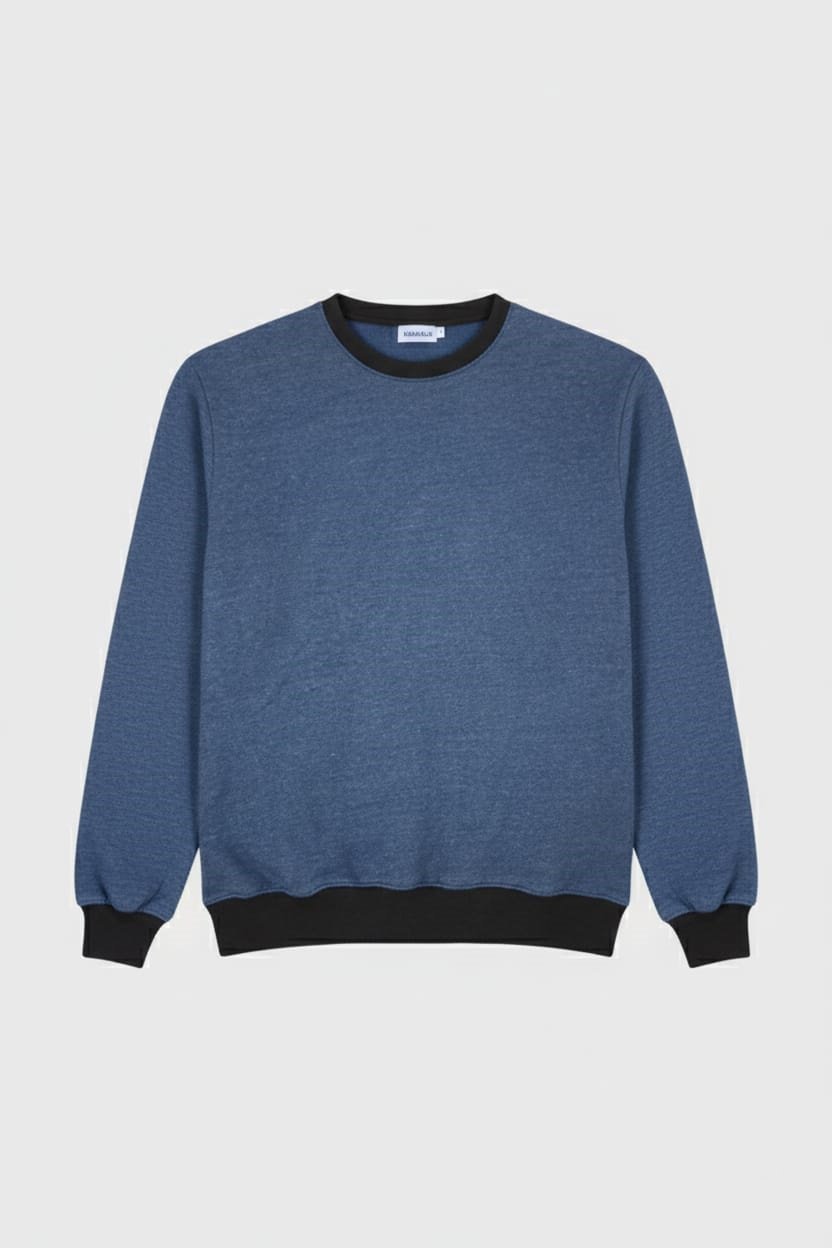 The Contrast Crew: Elevated Casual Wear. Add a texture to your winter look with this Blue Melange Sweatshirt. The striking Black ribbing on the collar, cuffs, and hem provides a crisp, modern contrast to the subtle blue texture. Unique Blue Melange (Textured Blue). ​Contrast: Sharp Black ribbing for a modern finish. Comfort: Cozy and warm Winter Fleece construction. A versatile piece for daily comfort. Get yours now!