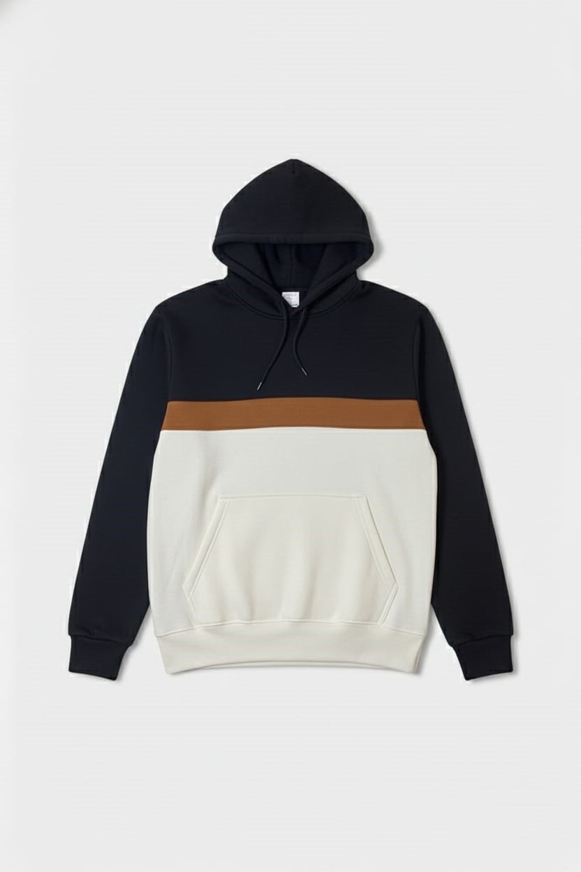 The New Definition of Street Style. Stand out from the crowd with our Triple Color Block Hoodie. Featuring bold horizontal panels of Dark Navy, Rich Tan, and Cream, this hoodie is designed for the modern trendsetter. Colors: High-contrast combination of three stylish shades. Soft, heavy-duty Fleece for all-day warmth and comfort. ​Design: Adjustable hood and a large front pocket for practicality. Don’t just follow the trend, set it. Order yours today!